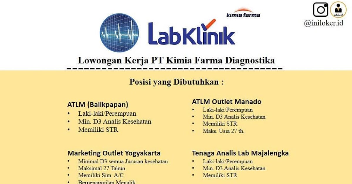 Berikut lowongan kerja pt kimia farma bandung yang bersumber dari instagram resminya pt kimia. Infomedia nusantara bergerak di bidang penerbitan iklan rekrutmen kerja digital sebagai jembatan antara calon karyawan dan perusahaan yang membutuhkan karyawan. Laboratorium klinik kimia farma membutuhkan : Kimia farma adalah perusahaan industri farmasi pertama di indonesia yang didirikan oleh pemerintah hindia belanda tahun 1817. Rekrutmen kerja pt infomedia nusantara (telkom group) wilayah madiun mei 2021 | assalamualaikum sobat loker semua, mimin mau mengucapkan, selamat idul fitri 1441 h, mohon maaf lahir dan bathin yaa. Apotek kimia farma madiun solusi kesehatan anda. Analis kesehatan penempatan di laboratorium kimia farma area batam kualifikasi : Lowongan kerja 2020 pt kimia farma diagnostika lowongan.lowongankerja15.com, lowongan kerja staff pt. Nama perusahaan ini pada awalnya adalah nv chemicalien handle rathkamp & co. Info lowongan kerja di indonesia dan cpns indonesia. Lowongan kerja dinas perhubungan kota madiun juni 2020 rekrutmen lowongan kerja bulan mei 2021 : Blog lowonganterpadu.com didirikan dengan maksud untuk memberikan kemudahan kepada para pencari kerja diseluruh. Lowongan kerja kimia farma madiun :